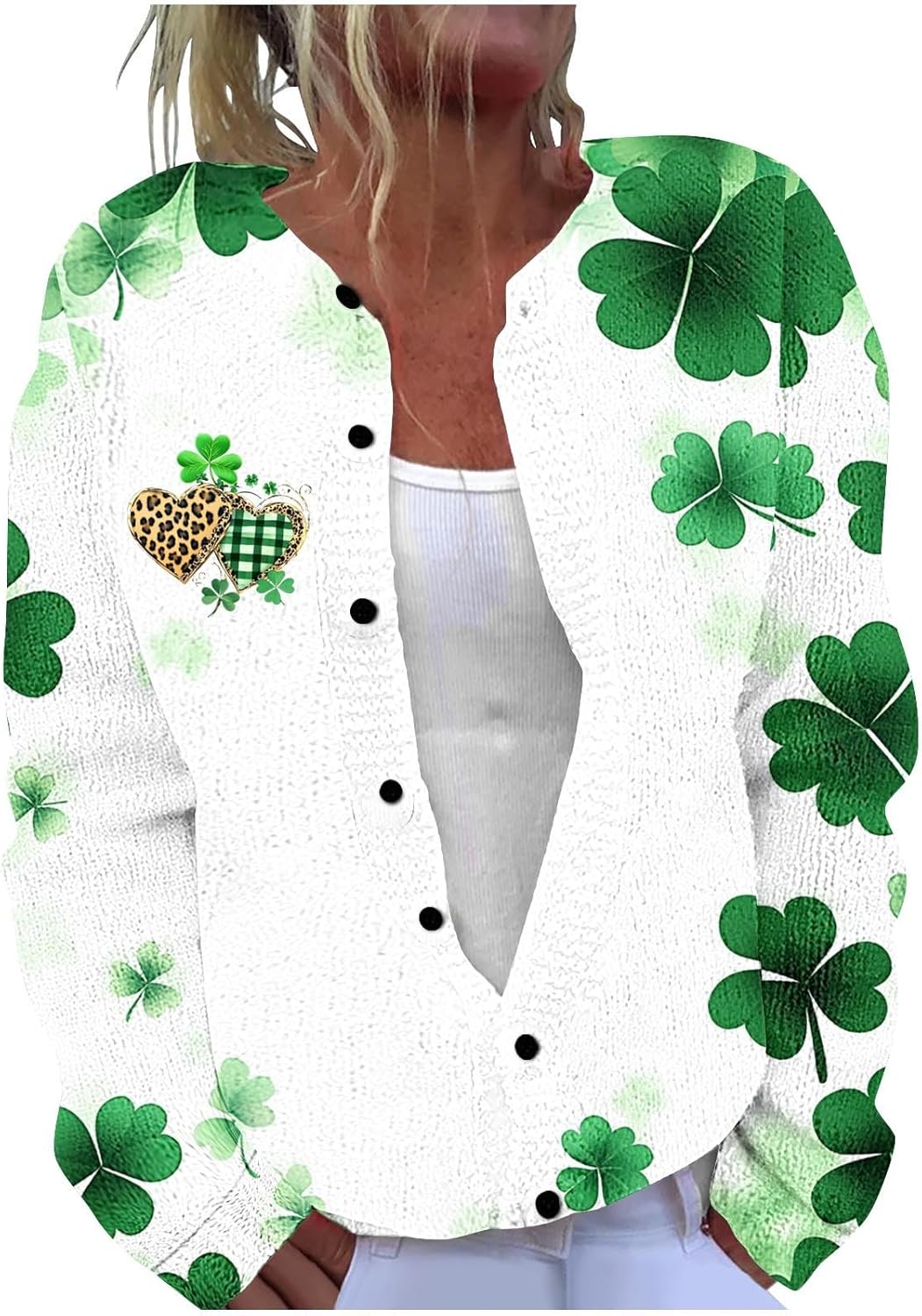 St Patricks Day Cardigan Sweaters Women Lightweight Knit Cardigans Jackets Button Down Lucky Shamrock Clover Blouse