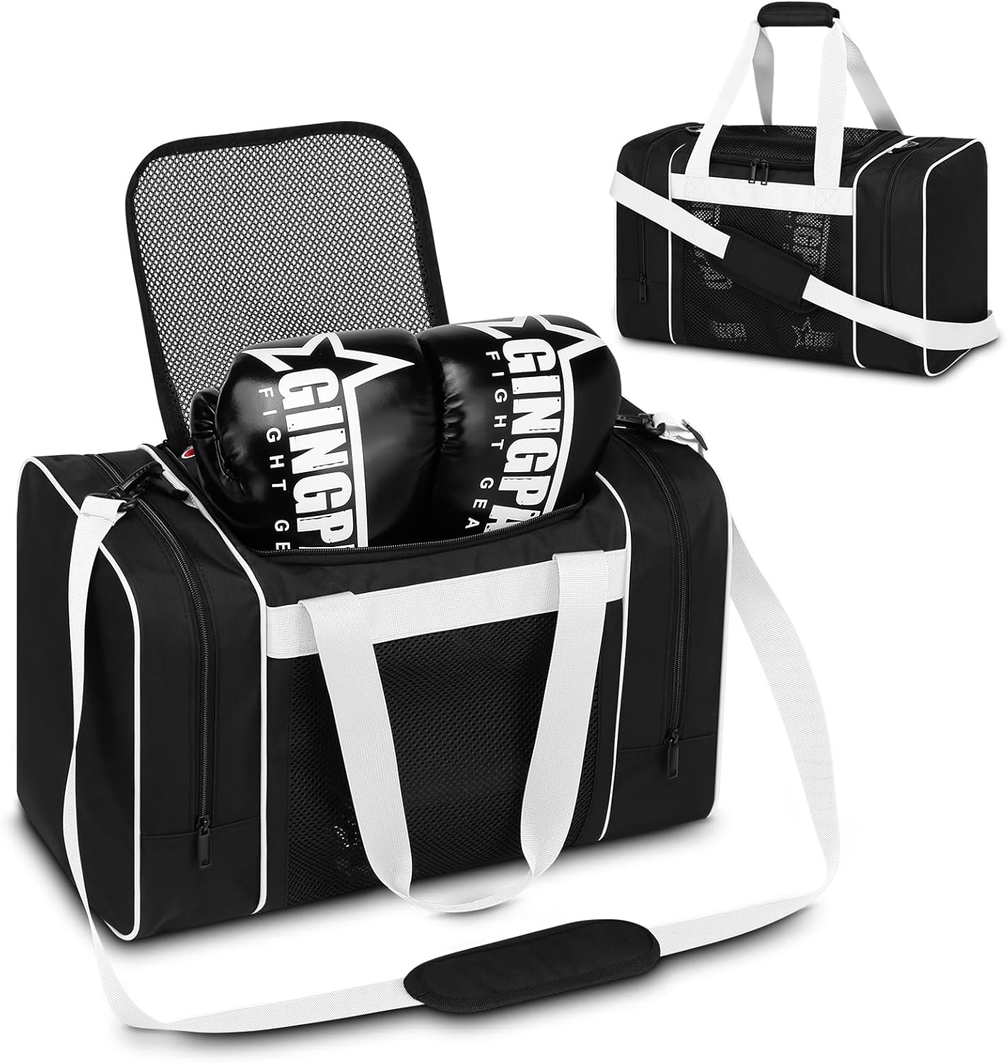 - Breathable Mesh Compartment for Dry Gear: The boxing gym bag features a breathable mesh compartment that keeps your gloves and gear fresh by allowing airflow to dry out moisture. The main compartment also includes a removable divider to store clothes separately, keeping everything organized and preventing odors.