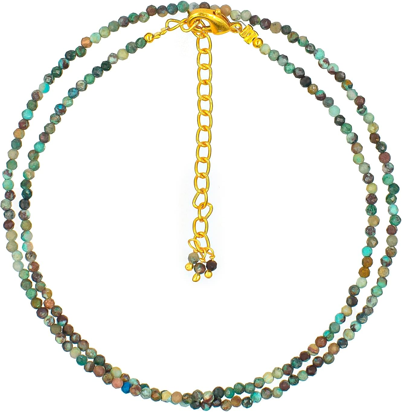 Natural Gemstone Faceted Beaded Necklace for Woman| Gold Plated Gem-stone Necklace | Beads 2–3 mm | Adjustable Chain 16+2 Inch