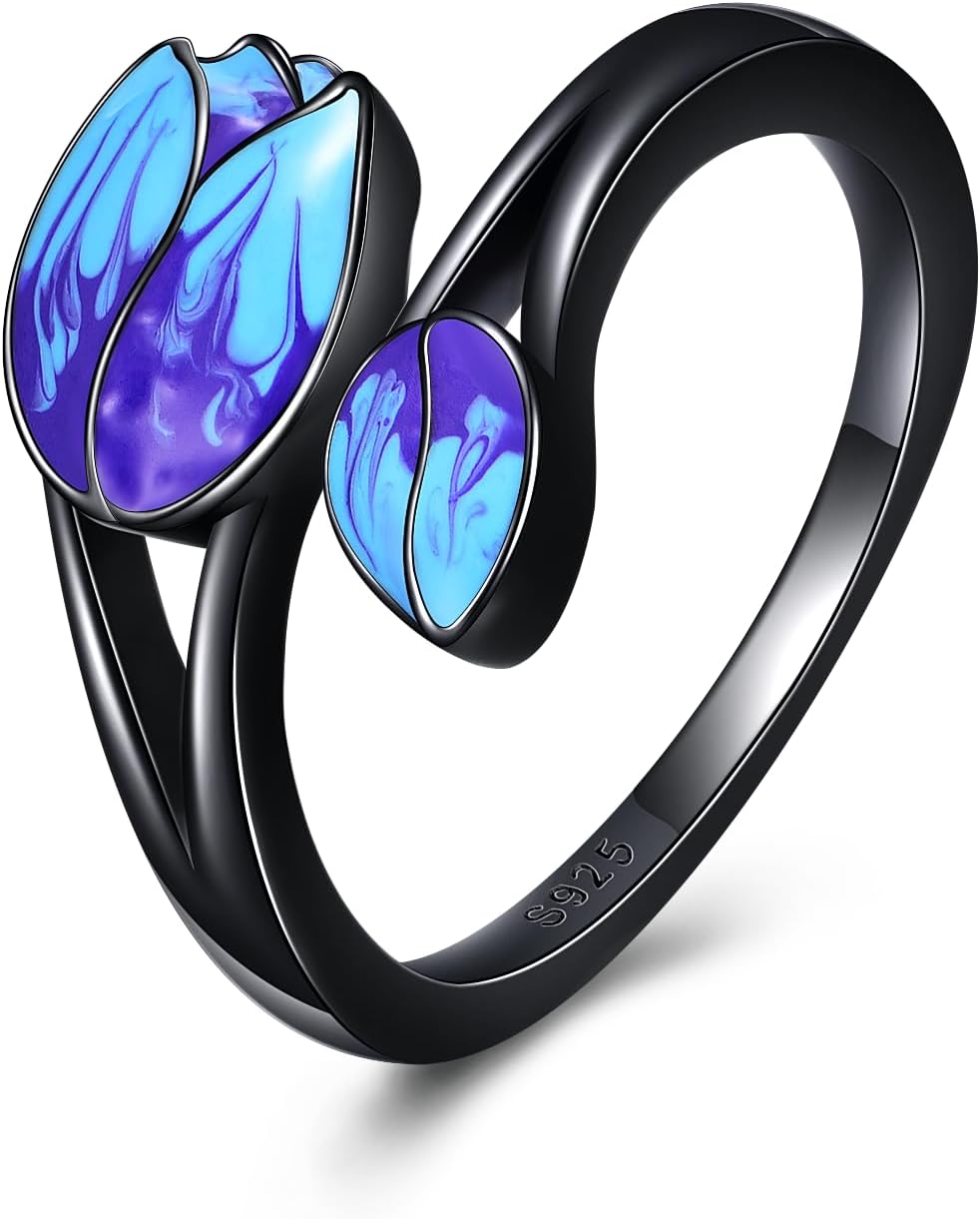 CRMAD Tulip Ring for Women Sterling Silver Purple Tulip Gifts for Friend