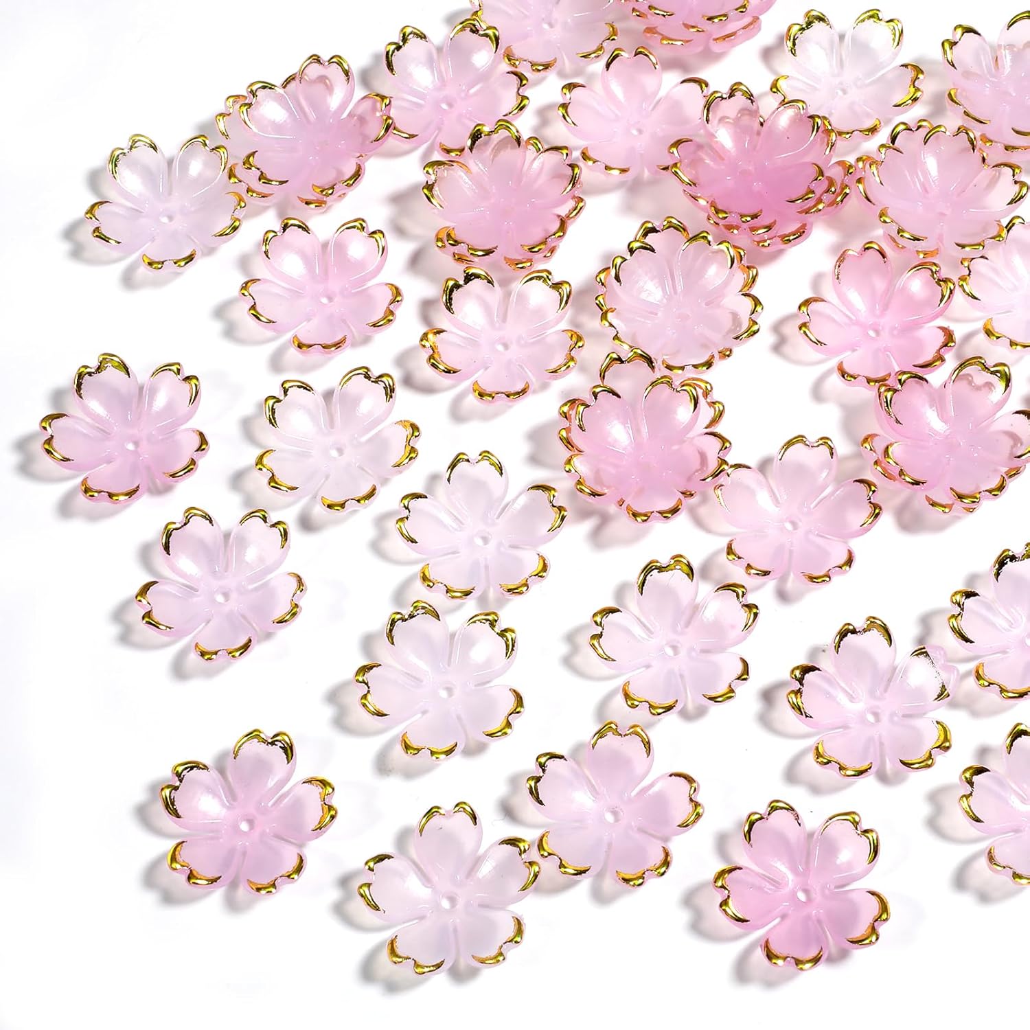 - Beautiful Design: Each pink acrylic flower beads are designed with five petals, and the edge of the bead is decorated with gold plating. It is very fashionable and beautiful. It can be used to make bracelets and necklaces, full of romance.