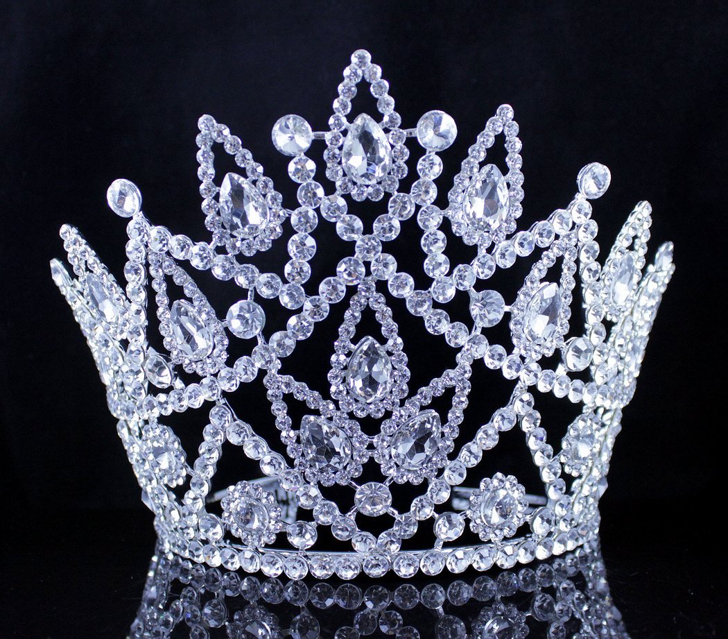 - This is gorgeous huge 5-3/4" high beauty queen Austrian rhinestone tiara crown with hair combs. Glittery Clear Austrian rhinestones are set on Silver-plated metal. Rhinestones go all the way to the back of the tiara. All rhinestones shine a lot! Sides hair combs for extra security. This tiara is perfect for wedding, party, prom, pageant or any special occasions! Thanks for looking!