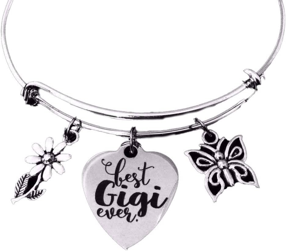Best Gigi Ever Expandable Charm Bracelet Adjustable Silver Bangle Meaningful One Size Fits All Gift Grandmother Gift for Gigi