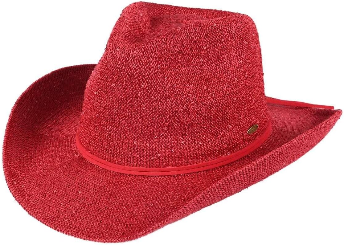 C.C Sparkly Sequin Cowboy Hat with Suede String Trim, Red