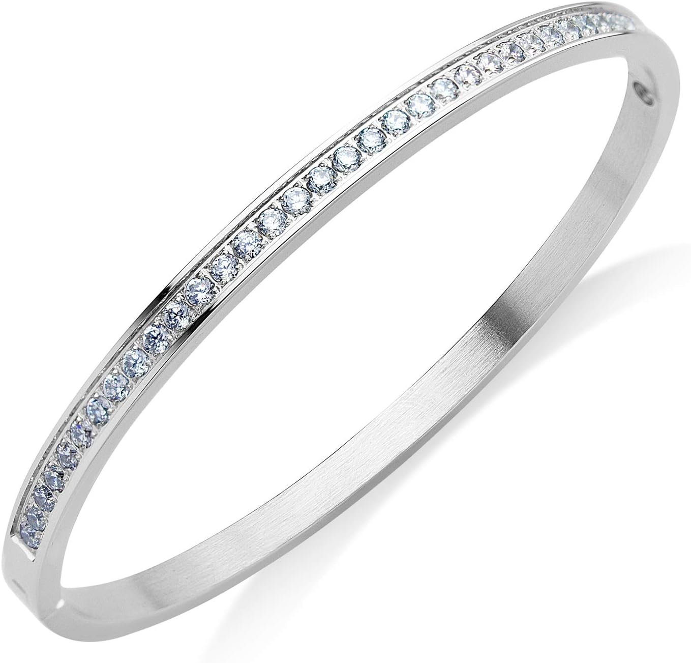 555Jewelry Womens Stainless Steel Fashion Cuff Hinged Lock Bangle Bracelet