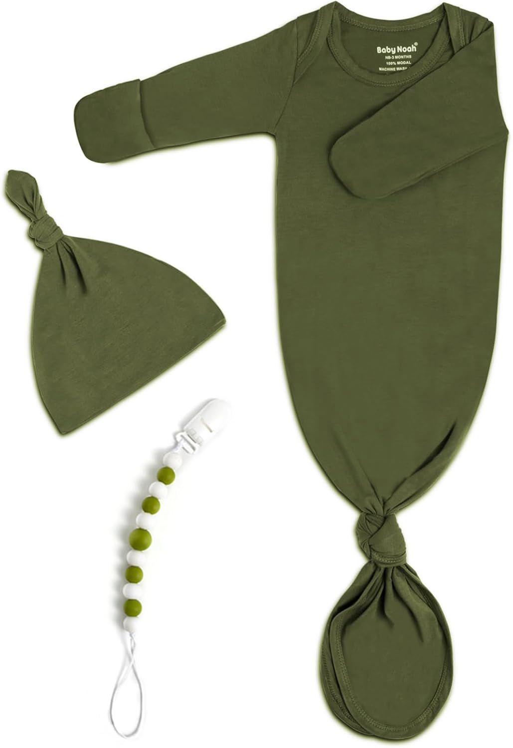 Extra Long Newborn Baby Knotted Gown, Super Soft Silky Coming Home Outfit with Mittens & Hat, Baby Sleepers for Girls & Boys 0~3 Months, Newborn Photoshoot Outfits