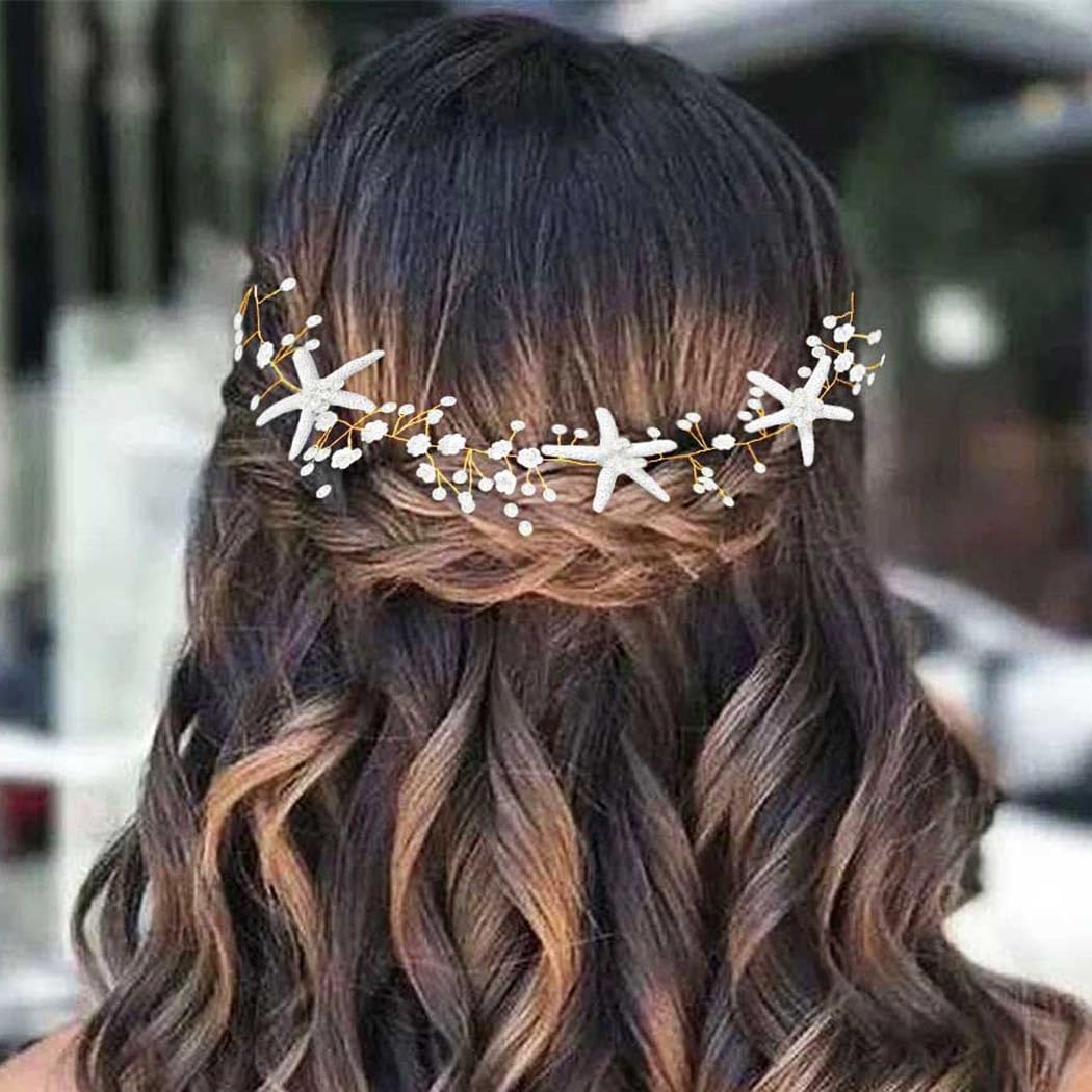 CASDRE Starfish Bride Wedding Hair Vine Pearl Bridal Headpiece Beach Wedding Hair Accessories for Women and Girls(C Gold)