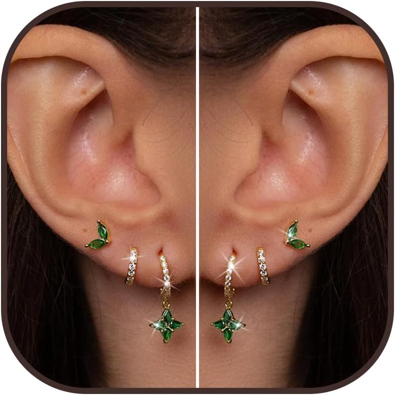 3Pairs Earring Sets for Multiple Piercing Dainty Gold Huugie Earrings Cubic Zirconia Pearl Stud Ear Cuff Earrings for Women