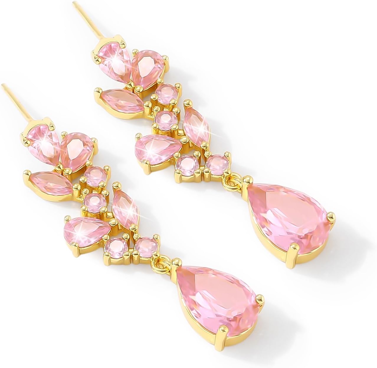 Teardrop Wedding Bridal Dangle Earrings for Brides Birdesmaid,Crystal Cubic Zirconia Chandelier Dangling Earring Gold/Silver Plated Diamond Drop Earrings for Prom Pageant