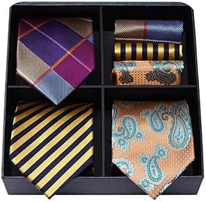 HISDERN Mens Ties and Pocket Square Set Business Elegant Ties for Men Classic Lot 3 Pcs Wedding Party Neckties & Handkerchief