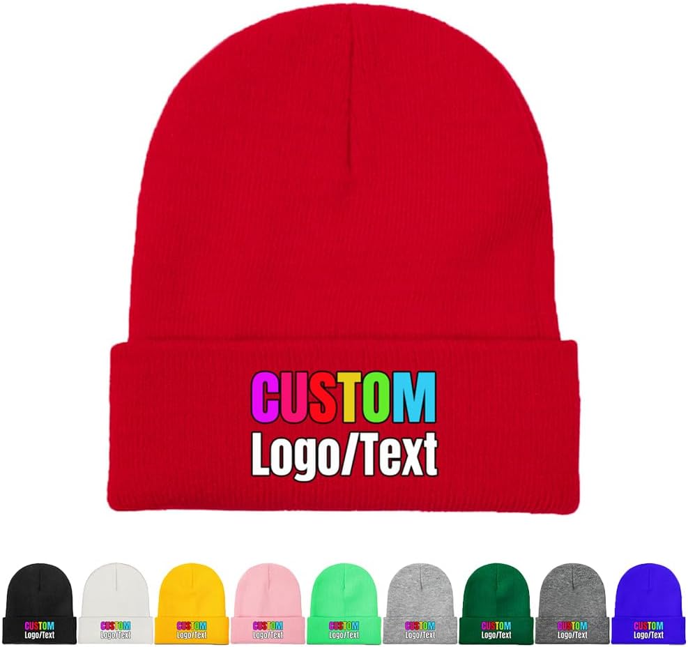 Custom Beanie Hats, Personalized Beanies Knit Cuffed Cap with Text Logo Name, Warm Gifts for Men Women