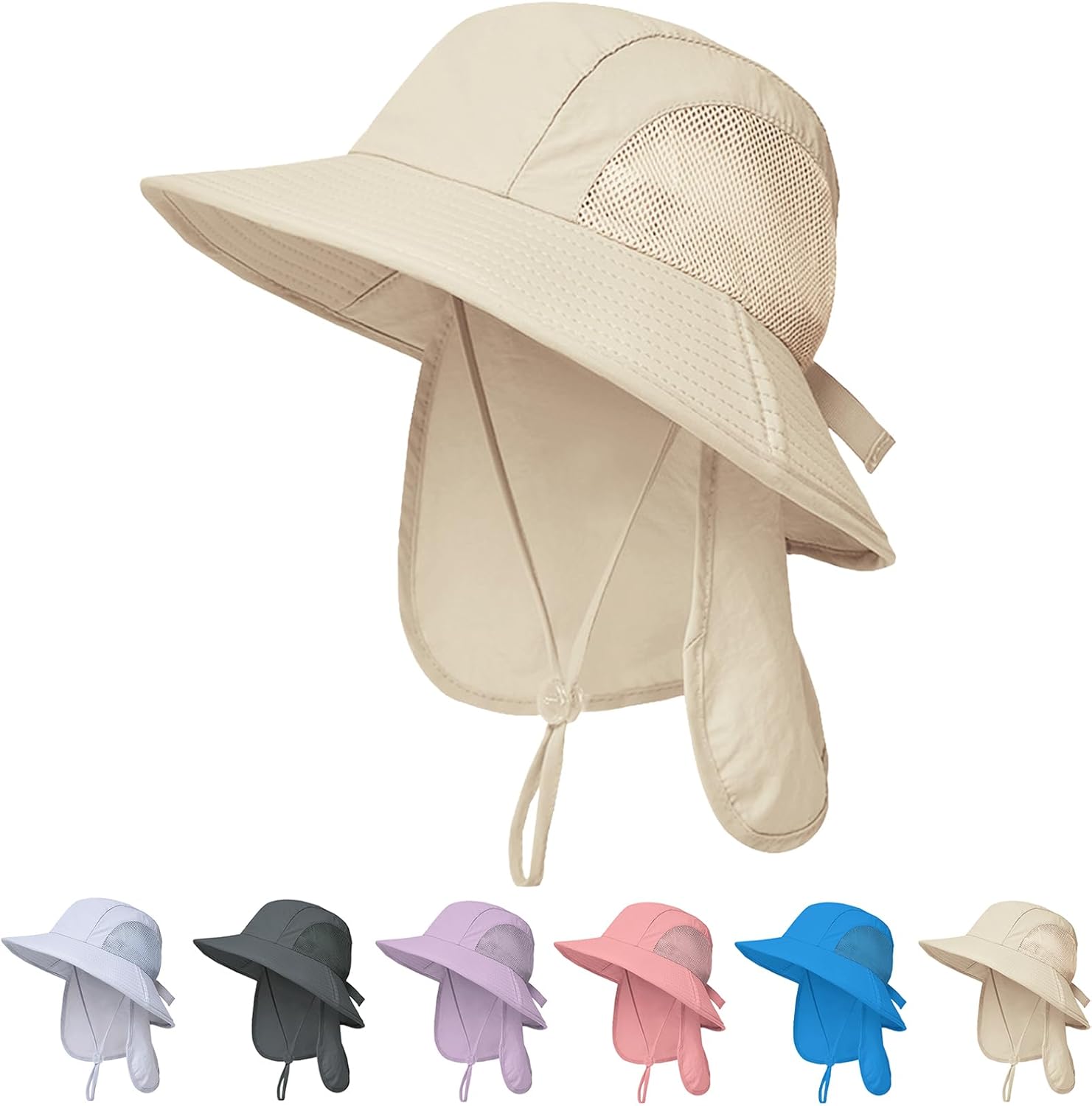 Outdoor Kids Sun Hats with Neck Flap Boys Girls Wide Brim UPF 50+ UV Protection Children Bucket Hat Safari Hat