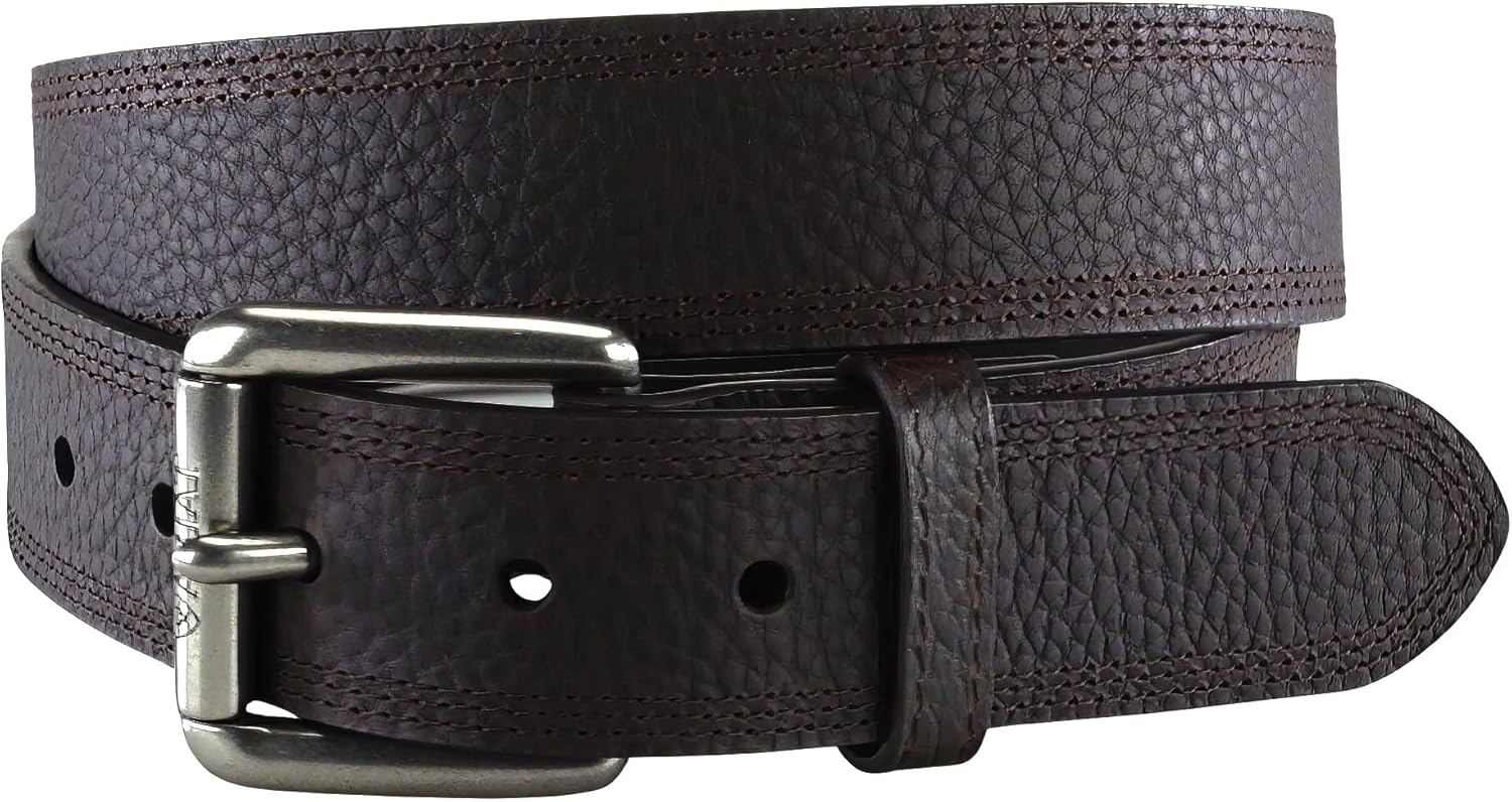 ARIAT Men's Triple Row Stitch Leather Work Belt with Removable Roller Buckle