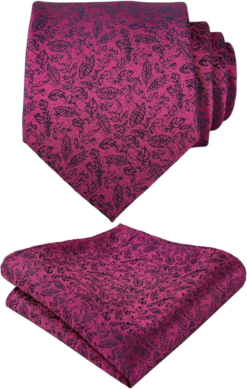 Alizeal Mens 3.15'' Leaf Flower Pattern Tie with Floral Pocket Square Set, Magenta