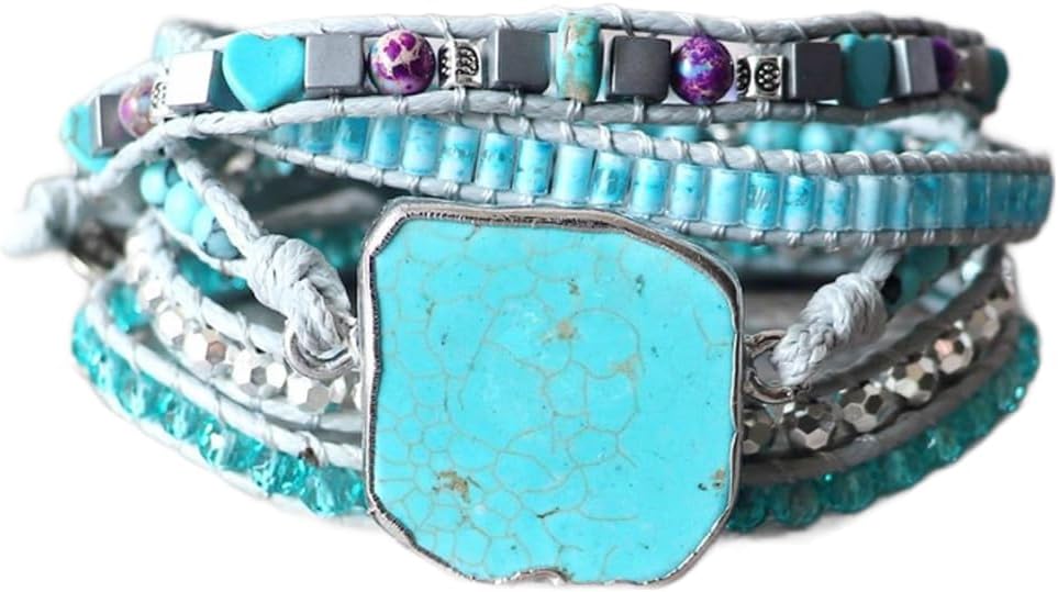 YGLINE Natural Stone Bracelet 5 Wraps Bracelet Handmade Blue Color Boho Bracelet for Women Bracelet