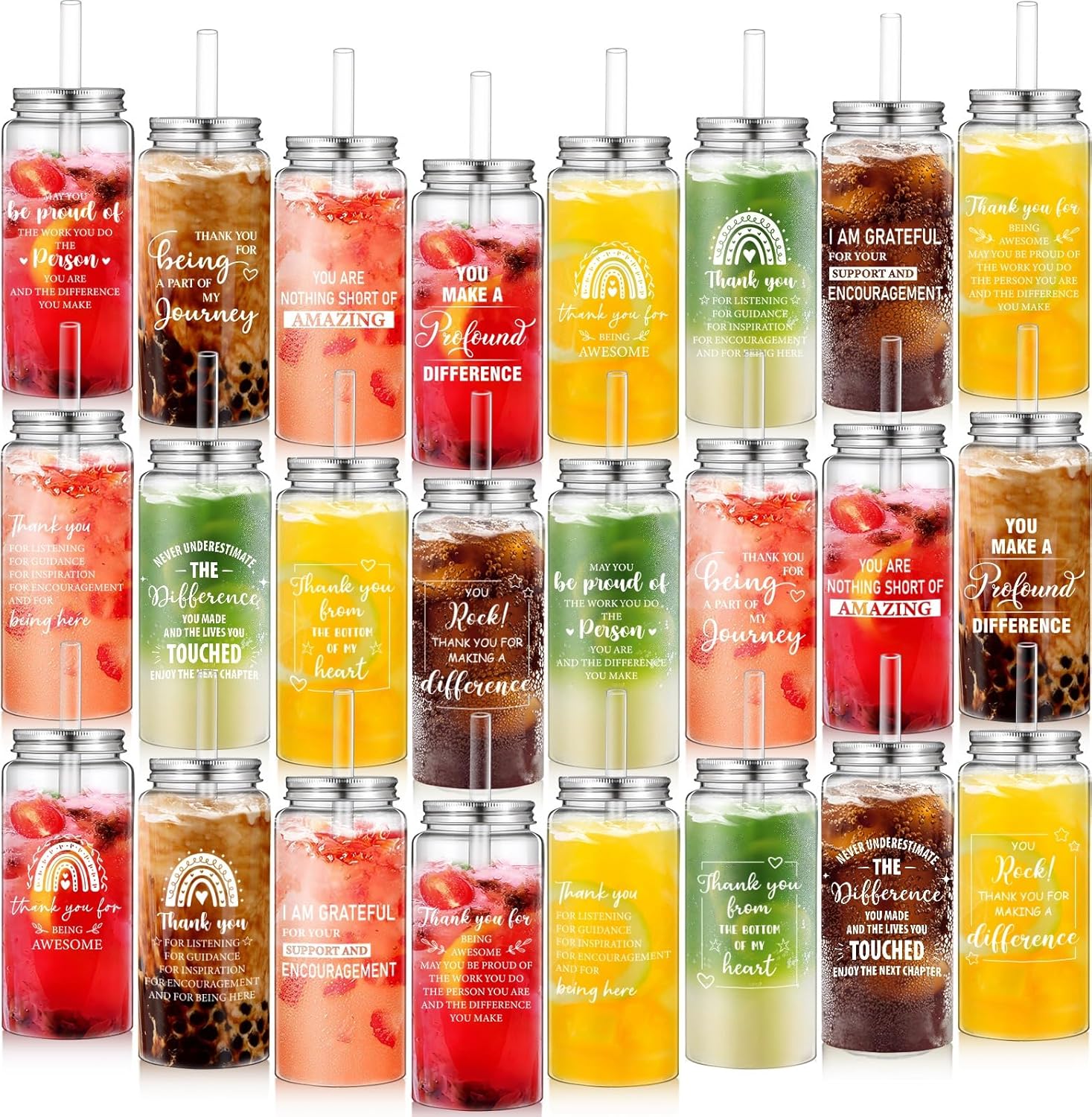 - Expressive and Diversified: these employee appreciation gifts come in a pack of 24, with 12 distinct artistic designs, 2 in each, the transparent body with meaningful white words and patterns on each cup, looks fresh and clean, making them ideal to share with your team members or guests, the versatility in styles ensures many people get a charming piece while celebrating a common theme