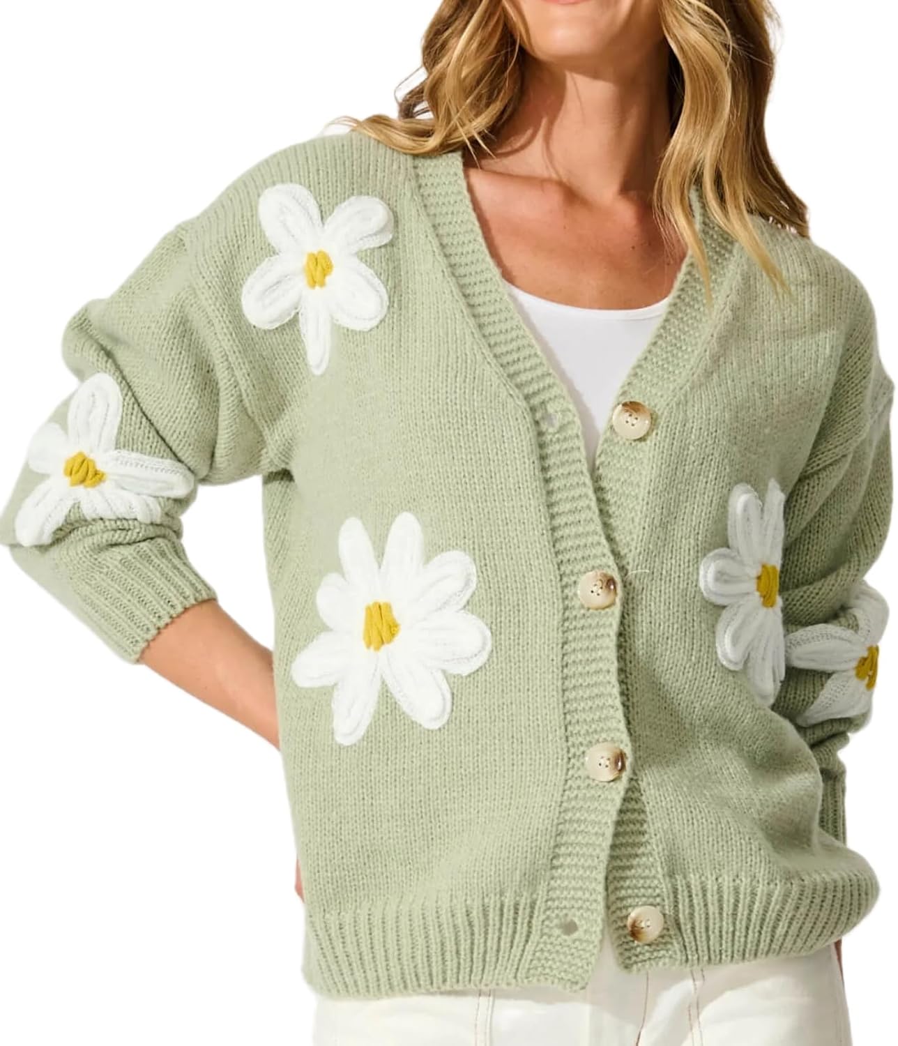 Womens Flower Knit Cardigans Long Sleeve Button-up Aesthetic 90s Knitted Fall Sweater Cardigans Tops