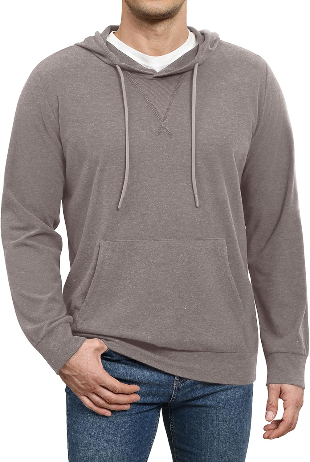 Susclude Men's Hooded Sweaters Long Sleeve Knitted Pullover Sweater Basic Casual Comfy Hoodies for Men with Kanga Pocket