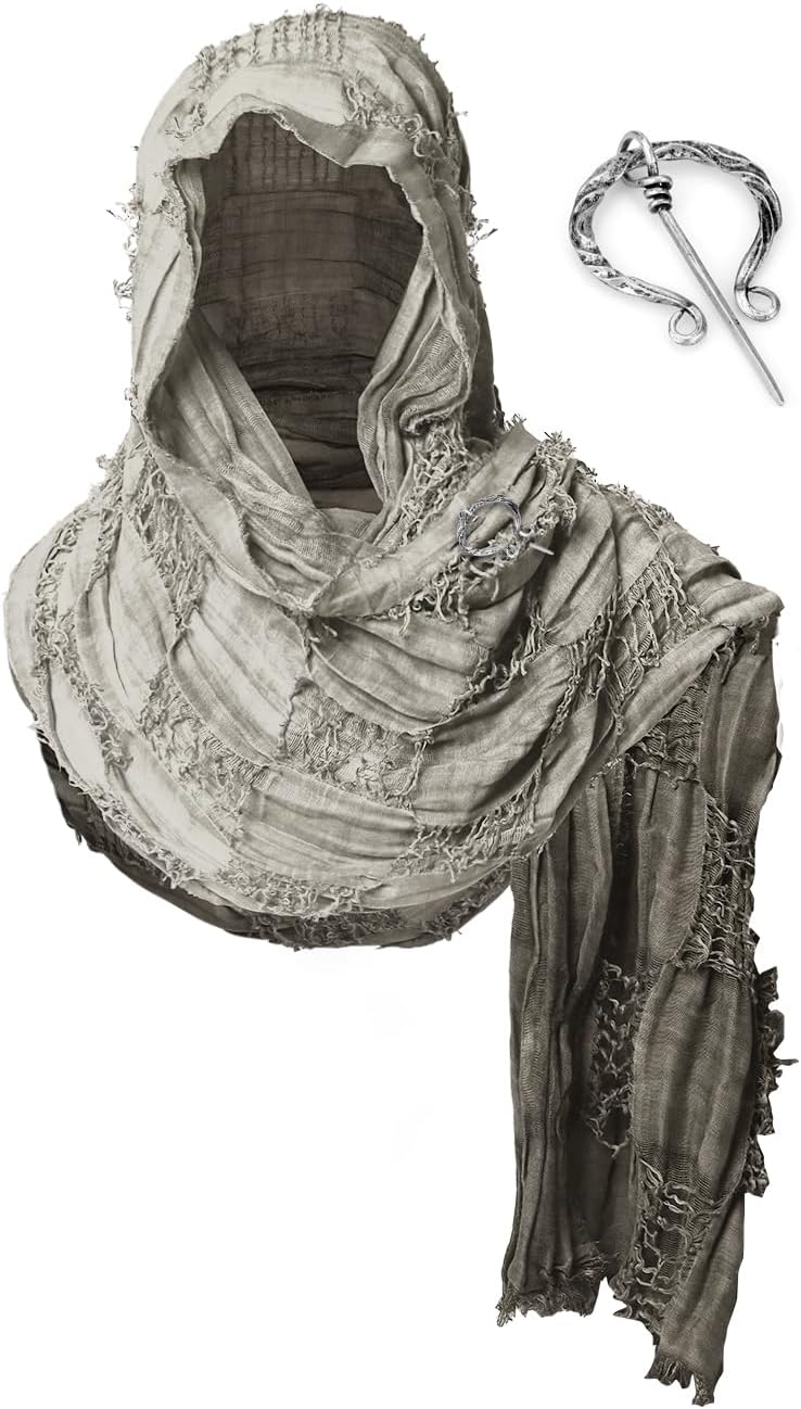 Wrap Dune Hooded Shawl Medieval Cloak Renaissance Costume Cape Shaman Cowl With Viking Brooch