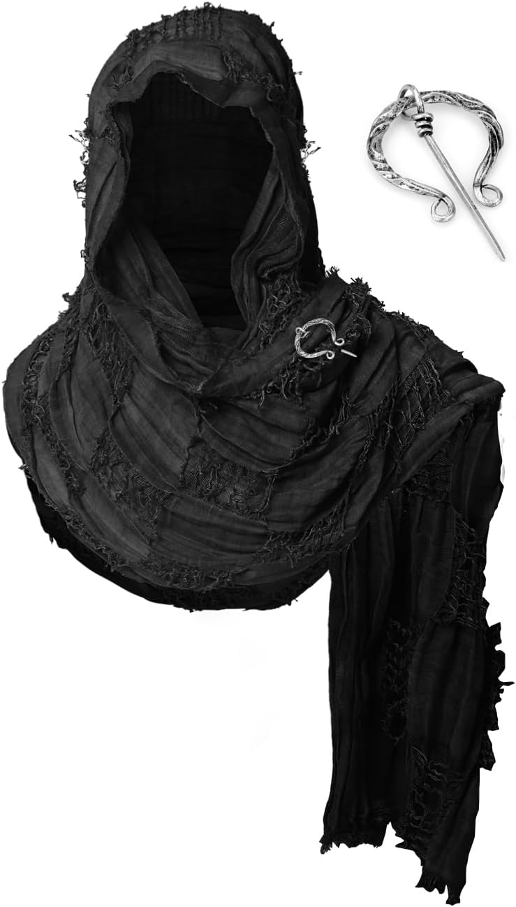Wrap Dune Hooded Shawl Medieval Cloak Renaissance Costume Cape Shaman Cowl With Viking Brooch