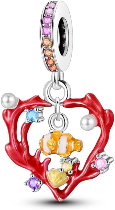 CYCUFF 925 Sterling Silver Charms Suitable for Bracelets Charms Beads, Charm Necklaces Jewellery Gift for Women Family Friends (Heart Coral Clown Fish Charm)