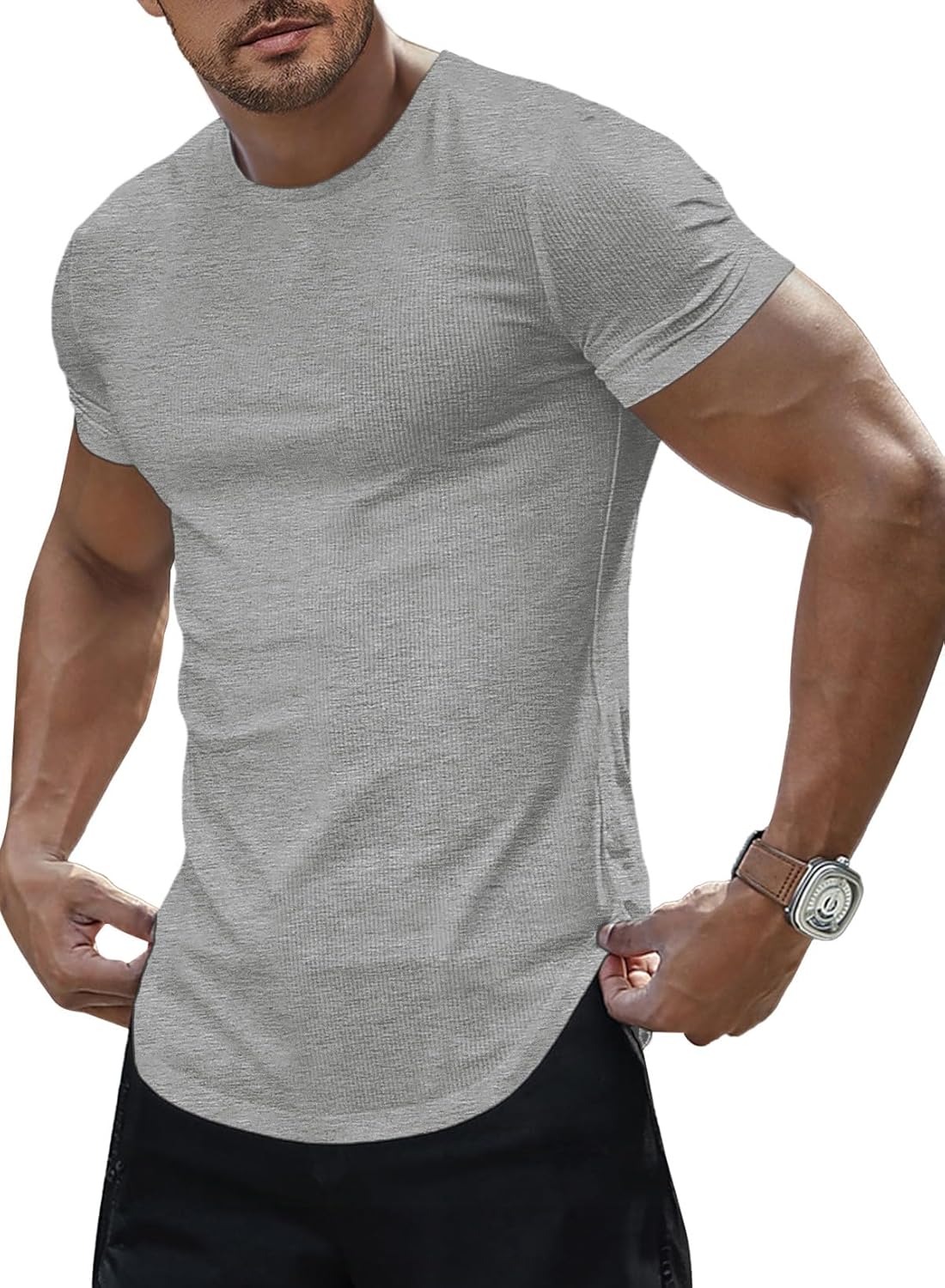 Mens Slim Fit Muscle Crewneck T-Shirt Summer Athlelic Shirts Longline Short Sleeve Summer Tees Shirts