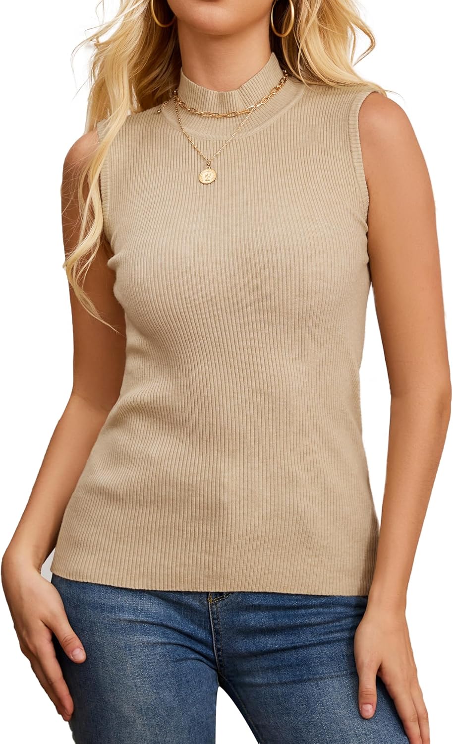 Women's Sleeveless Mock Neck Turtleneck Sweater Tops Ribbed Knit Vest Trendy Casual Slim Fitted Tank Tops