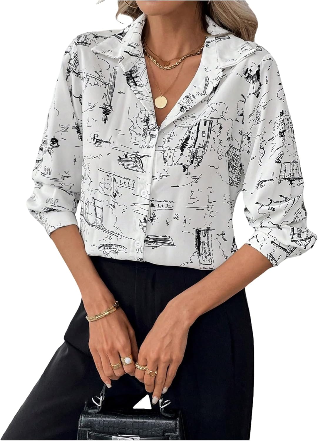 SweatyRocks Women's Printed Button Down Shirts Long Sleeve Dressy Casual Work Top Blouse