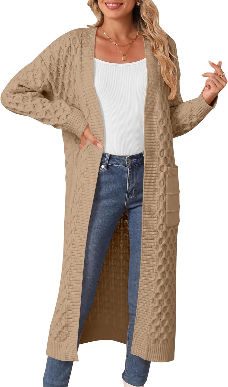 Womens Long Cardigan Sweaters Fall Open Front Coat Long Sleeve Cable Knit Maxi Outerwear Trendy Jacket Clothes