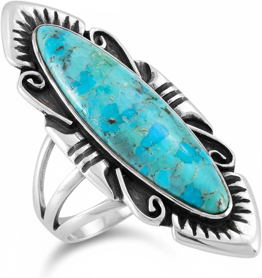 Turquoise Ring Sterling Silver 925 Genuine Gemstones Size 6 to 11
