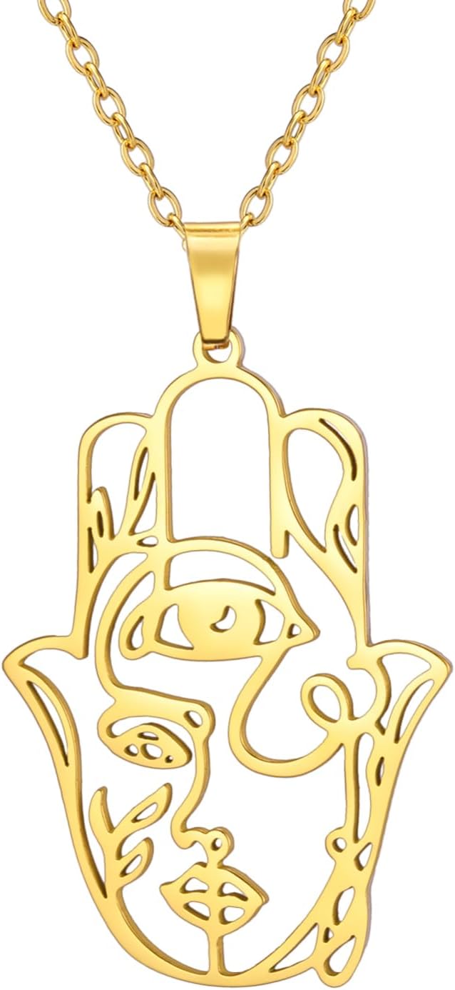 Hamsa Hand of Fatima Evil Eye Necklace for Women Abstract Face Pendants Jewish Female Protection Amulet Symbol Jewelry Women Men