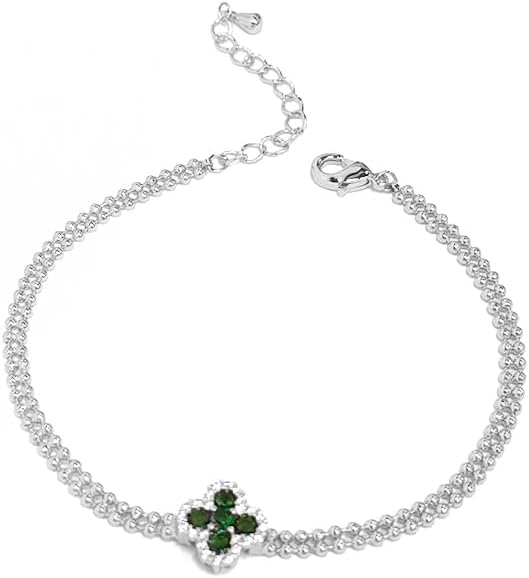 Elegant Four Leaf Clover Bracelet for Women Lucky Shamrock Charm Bracelet Imitation Cubic Zirconia Adjustable Beaded Chain Dainty Wedding St.Patrick's Day Holidays Party Jewelry for Her