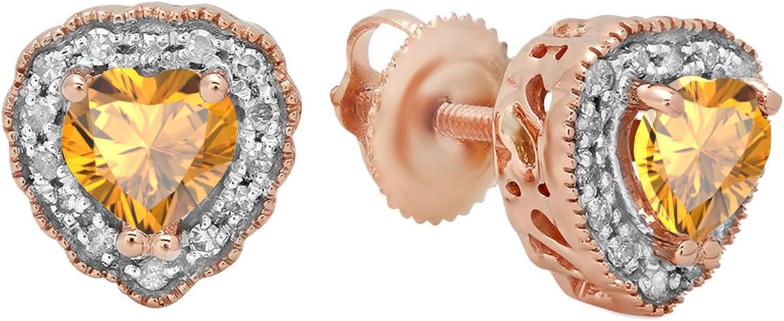 Dazzlingrock Collection 5mm Each Heart Shaped Gemstone & Round White Diamond Womens Halo Stud Earrings, 10K Solid Rose Gold