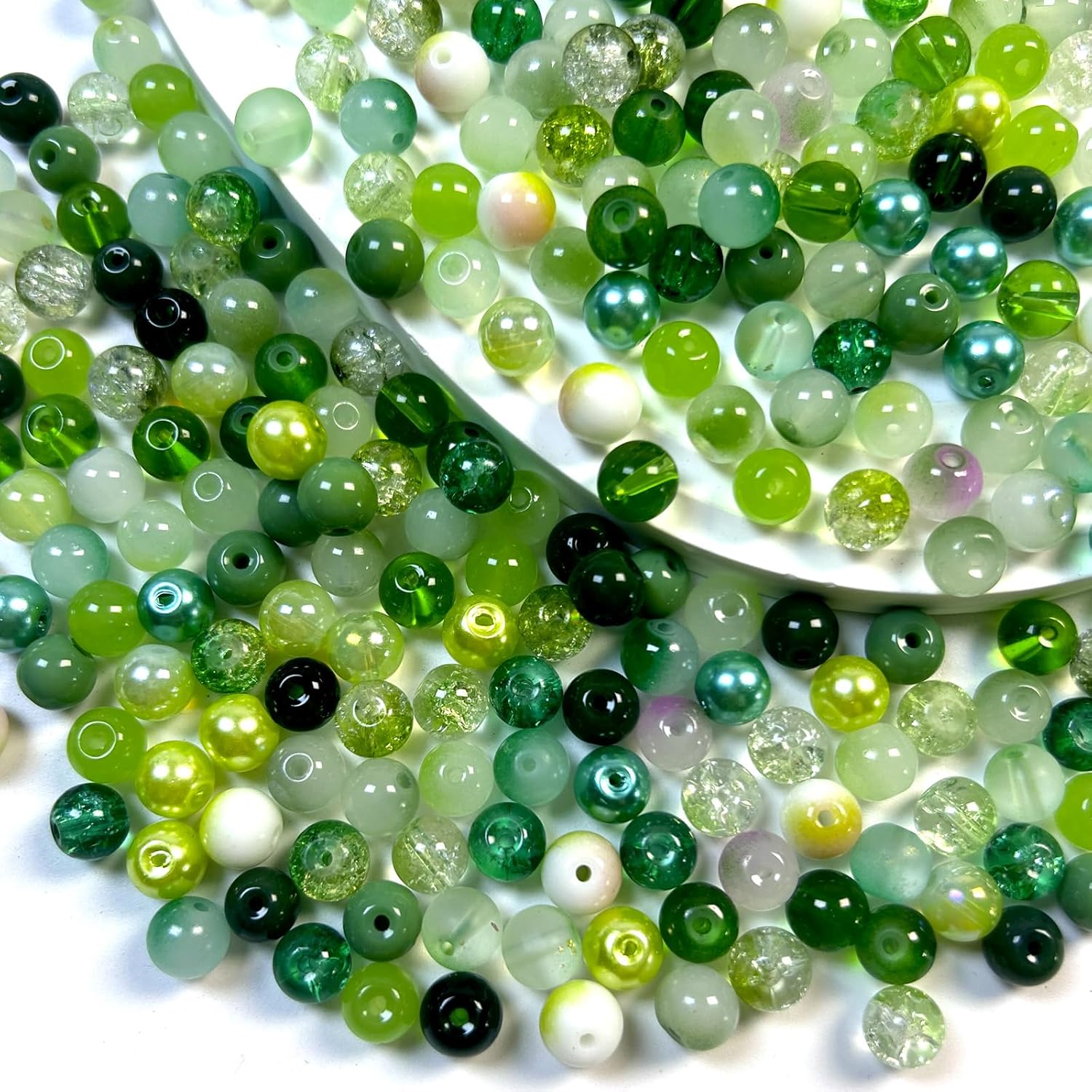 - Package Contents - A set of 24 colors of 8mm green-toned glass beads, randomly mixed in style and quantity, totaling approximately 300 pieces.