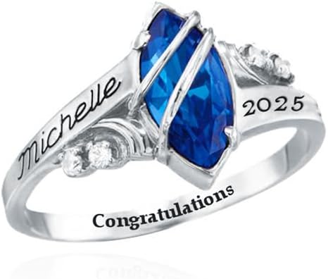 Personalized Graduation Rings for Women 925 Silver/10K/14K/18K Gold Custom-made Birthstone Engraved College Class Commemorative Rings for Graduats