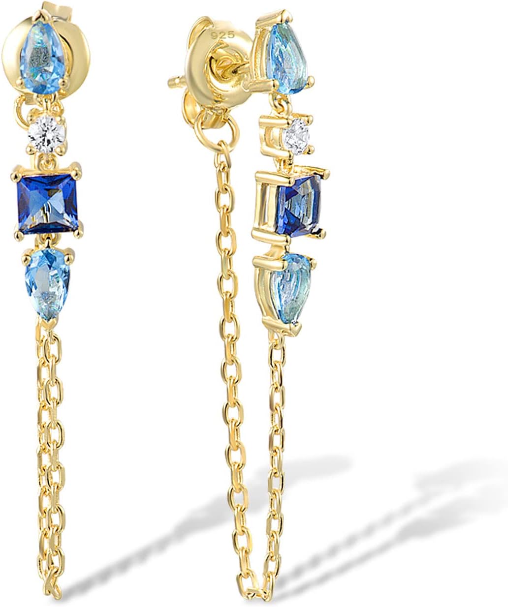 Santuzza Chain Earrings 925 Sterling Silver Green Glass 14K Gold Plating Bar Stud Earrings for Women