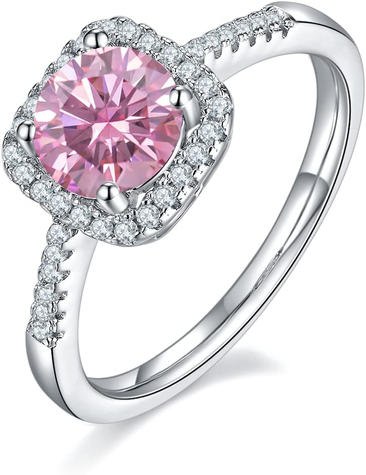 White/Pink/Yellow/Green/Black/Blue Moissanite Rings Wedding Promise Ring for Women 18K White Gold Plated 925 Sterling Silver 6.5mm Moissanite Halo Engagement Rings Christmas Gifts for Her(Size 5-10)