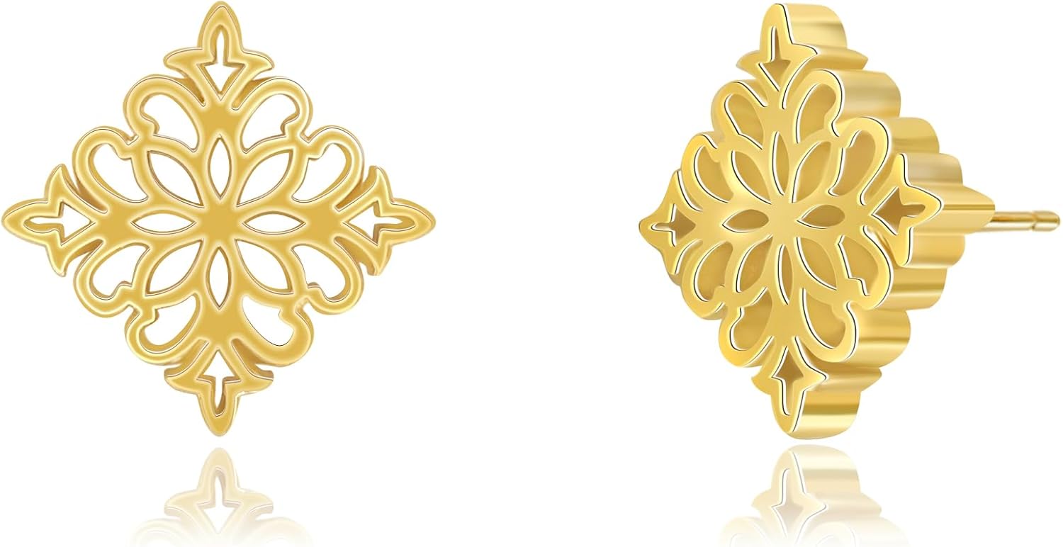 Square Chunky Golden Stud Earrings for Women | 18K Gold Plated Flower Studs Earrings