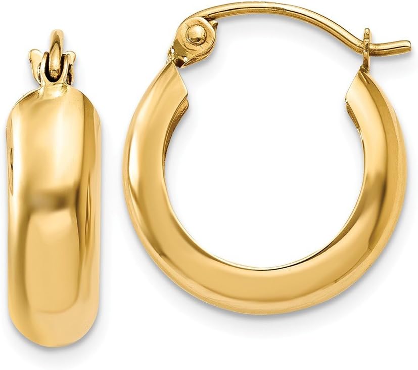 The Black Bow 4.75mm, 14k Yellow Gold Half Round Hoop Earrings, 12mm (7/16 Inch)