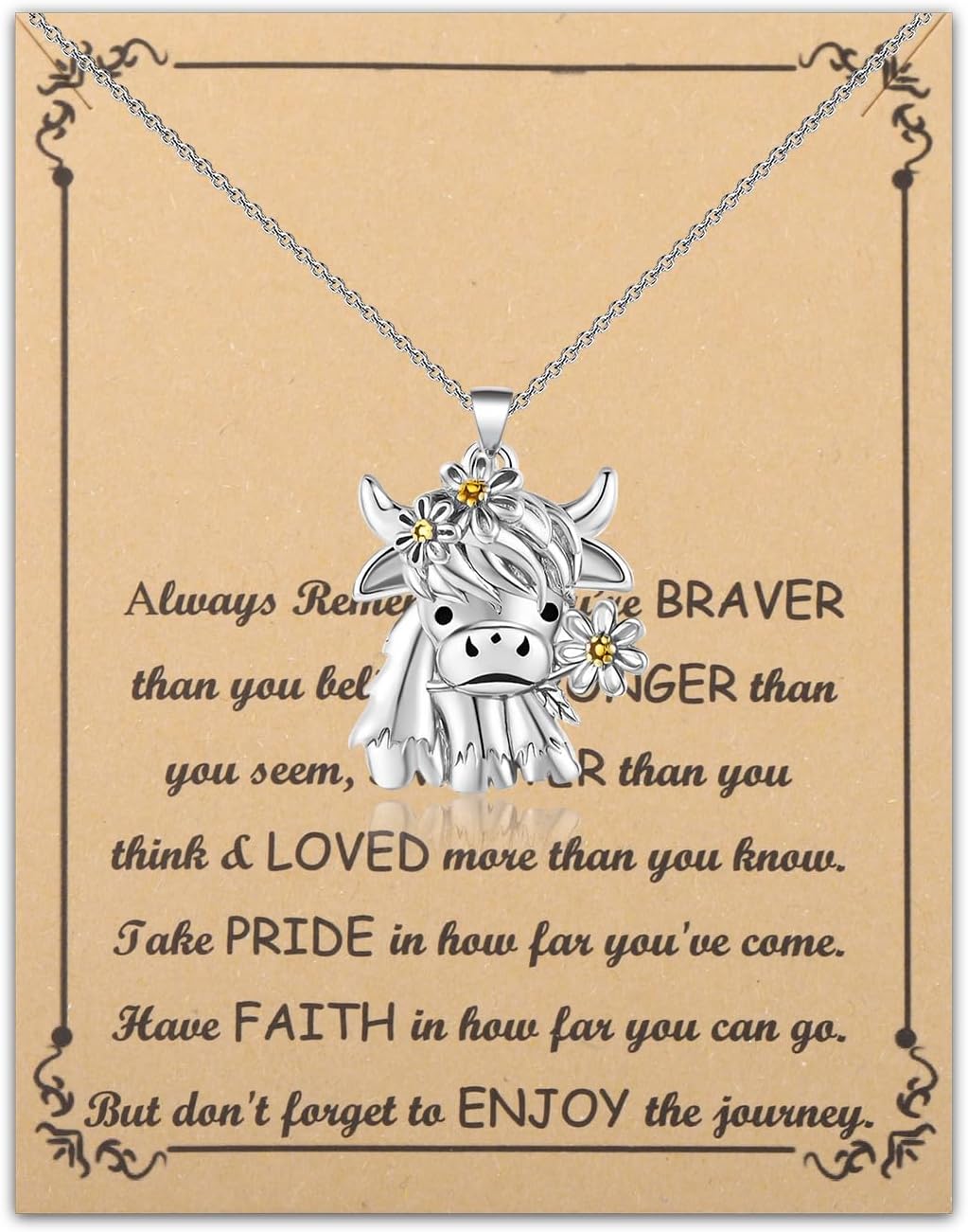 BNQL Highland Cow Necklace Cow Gifts for Cow Lovers Highland Cow Jewelry Gifts Cow Owner Gift Highland Cow Pendant Necklace, Large