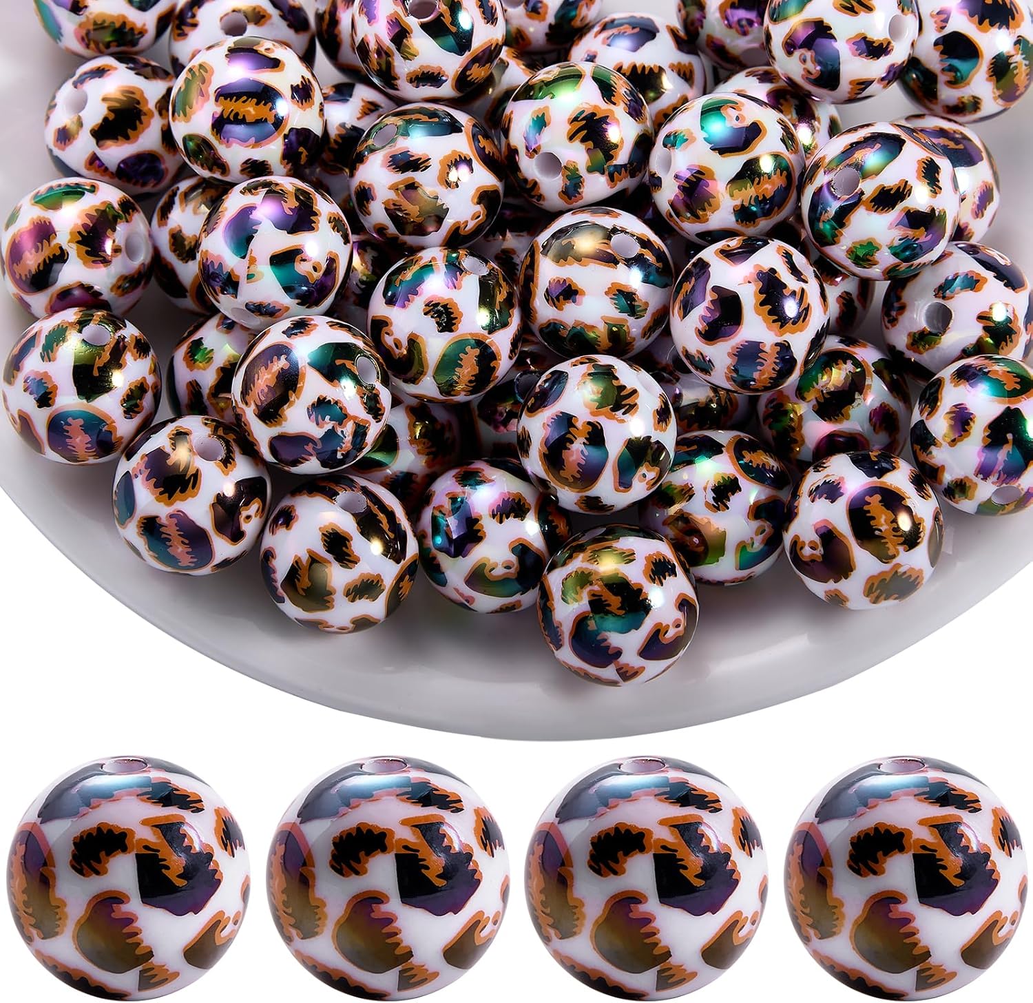 30Pcs 16mm Acrylic Beads Leopard Round Beads for Jewelry Making Keychain Bracelets Beadable Pens