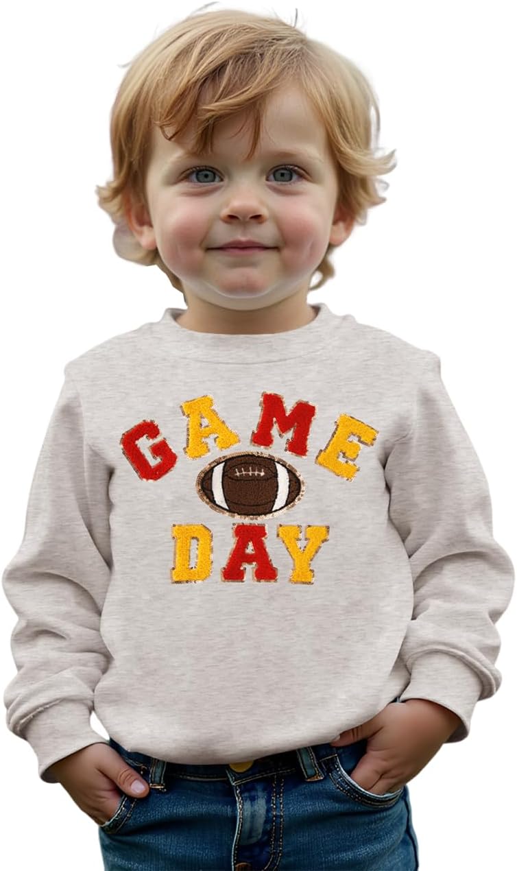 CM C&M WODRO Football Sweatshirt for Baby Boy Girl Game Day Sequin Embroidery Pullover Toddler Crewneck Long Sleeve Outfit