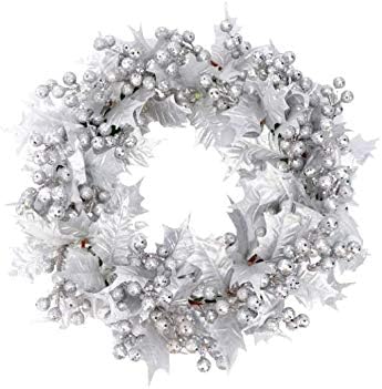 Taotenish Christmas Wreath Artificial Front Door Wreath Hanging Garland with Berries Leaves for Xmas Holiday Thanksgiving Party Decorations - Silver