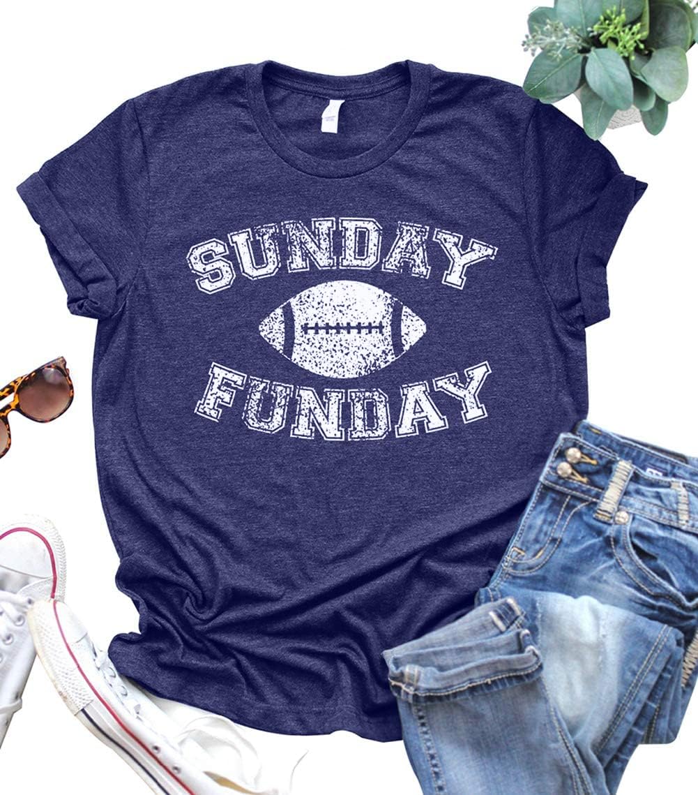 Football Shirts for Women Game Day T-Shirts Sunday Funday Tops Casual Sports Season Short Sleeve Shirt