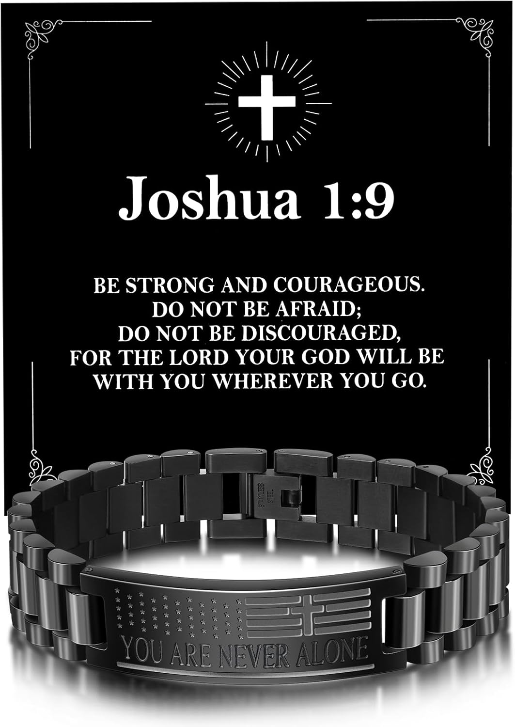 American Flag Bible Verse Bracelet for Men Cross Inspired Christian Stainless Steel Straps Watch Band Adjustable Link Cross Bracelet Faith Christian Religious Jewelry Gifts Christmas Valentine