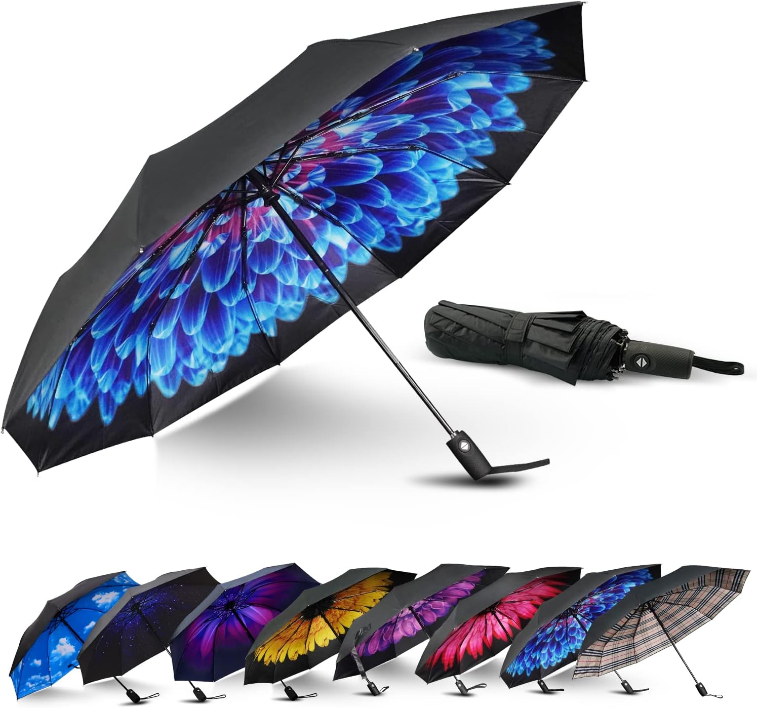 LLanxiry Compact Travel Umbrella, Automatic Open/Close Windproof Umbrella, 10 Fiberglass Ribs, 210T Pongee, UPF 50+ Sun/Rain, Lightweight Portable Umbrellas Travel Size with Carry Sleeve