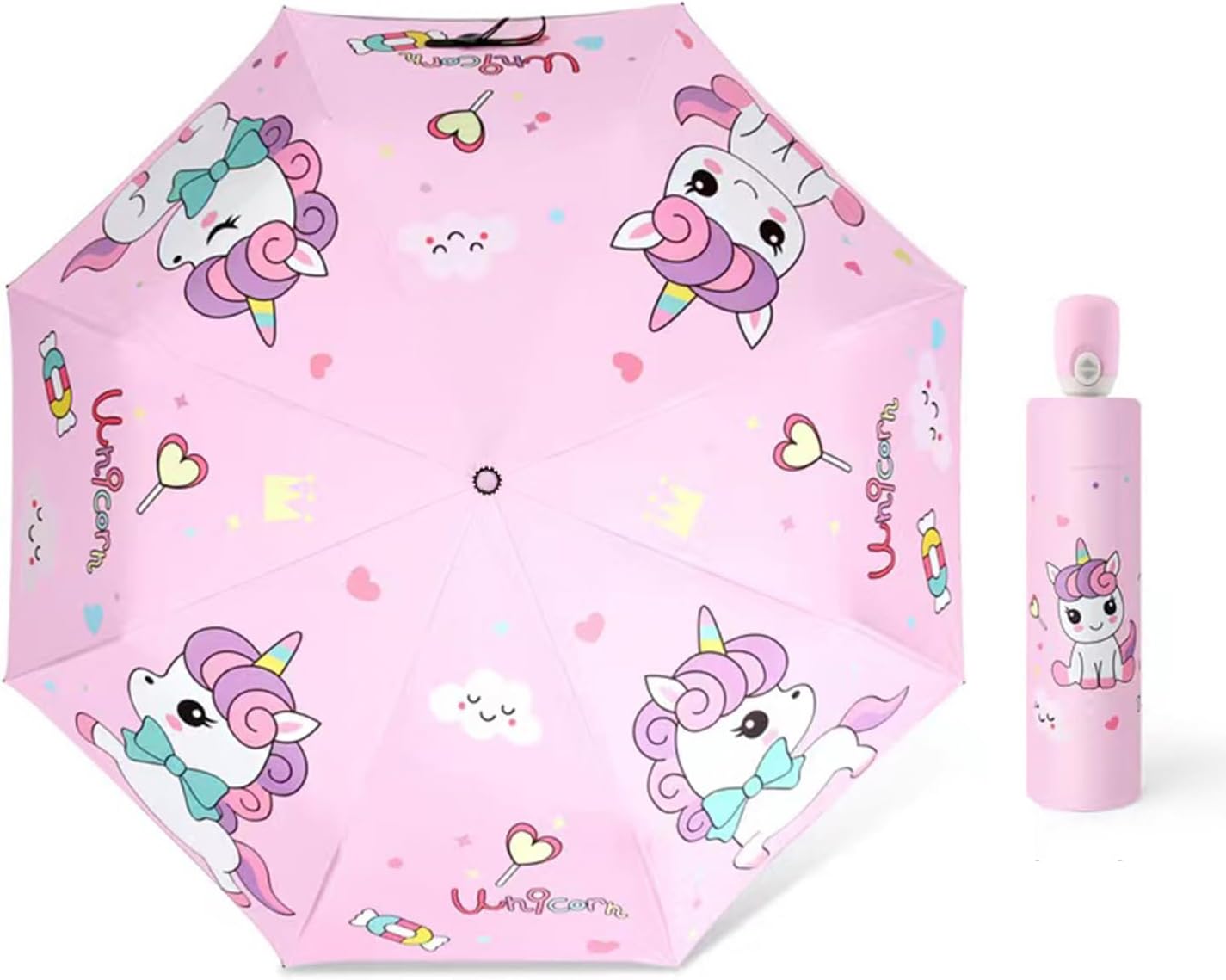 Automatic Kids Umbrella, Folding Telescopic Toddler Umbrella for girls & boys, UV/Sun Protection - Strong and Portable - Compact, Durable, Lightweight Cute Kitty Brolly