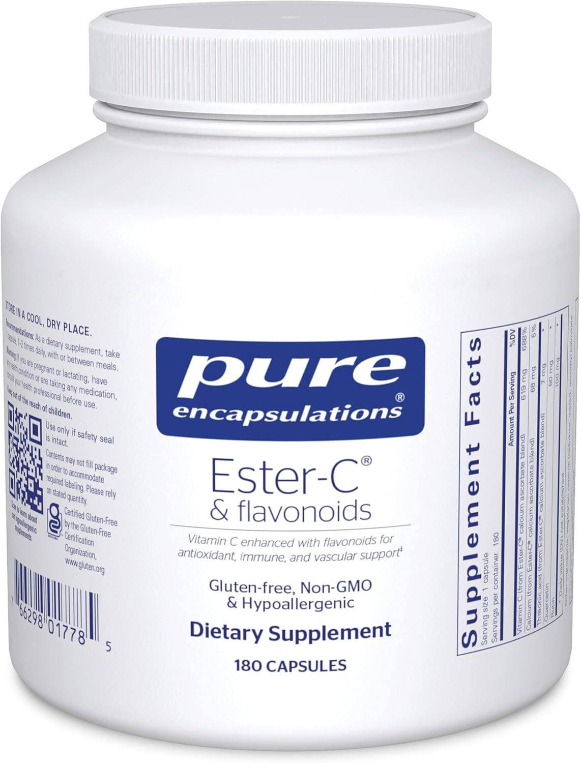 Pure Encapsulations Ester-C & Flavonoids - Vitamin C Supplement for Antioxidants - Immune & Vascular Support* with Calcium & Rutin - Gentle on Digestion - Vegan & Non-GMO - 180 Capsules