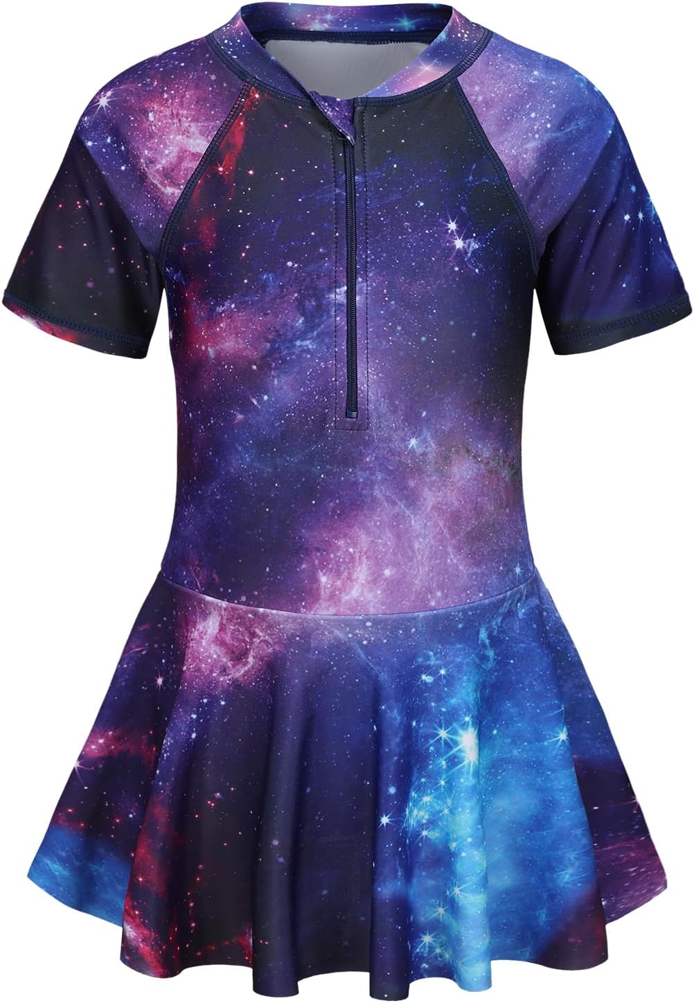 Girls One Piece Swimsuits Short Sleeve Swim Dress for Girls Hawaiian Skirted Bathing Suit Summer Swimwear 3-16 Years