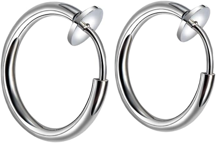 Gold Clip On Spring Hoop Earrings for Women - 14K Chunky Non Pierced Earring Plated Hoops Drop Dangle Earrings No Piercing Jewelry